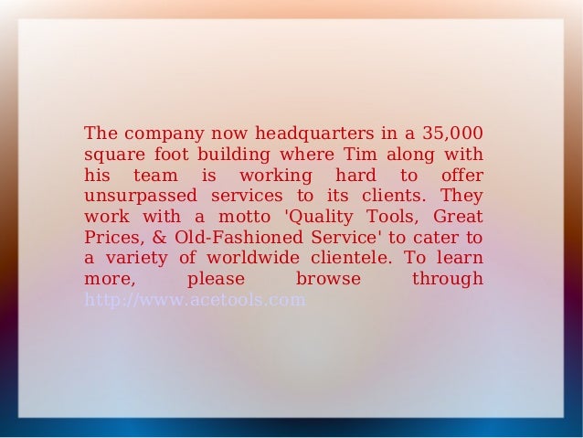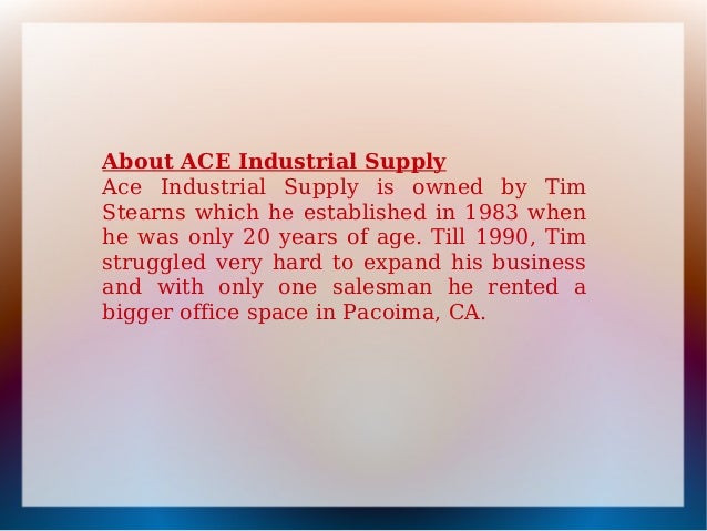 ACE INDUSTRIAL PRODUCTS. 5043 Farlin Avenue St. Louis, MO 63115 314-679-2540 (phone) 314-385-3254 (fax) www.aceindustrialproducts.com. Author: Tim Cronin Created Date: ... View This Document